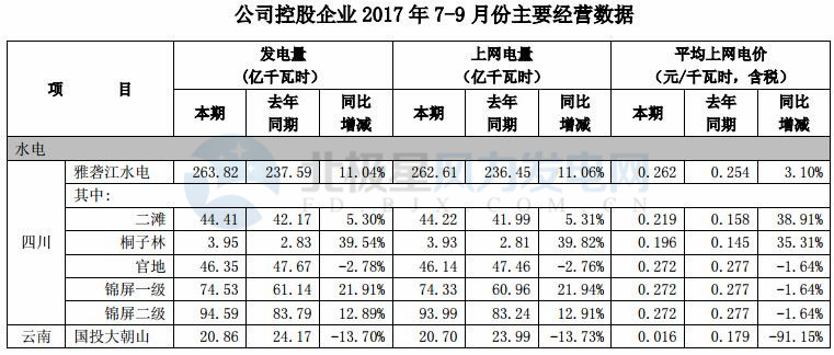 國投電力7-9月主要經(jīng)營數(shù)據(jù)