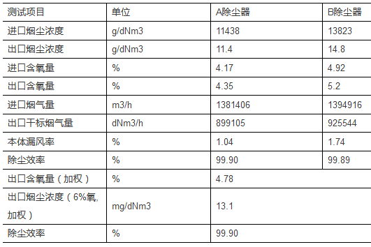 2016年1月份,測試單位對電除塵器進(jìn)行了測試,測試數(shù)據(jù)見表2-1: