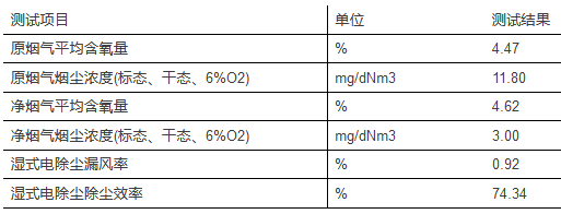 表2-2濕式電除塵器除塵效率測試數(shù)據(jù)
