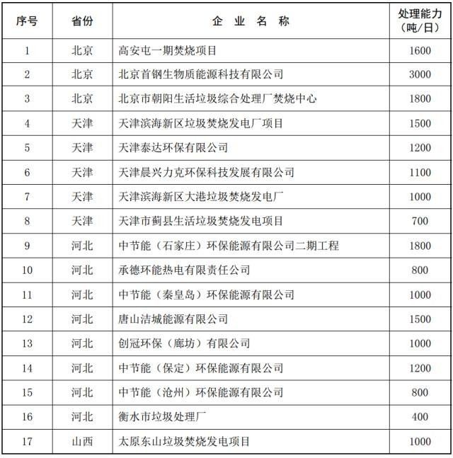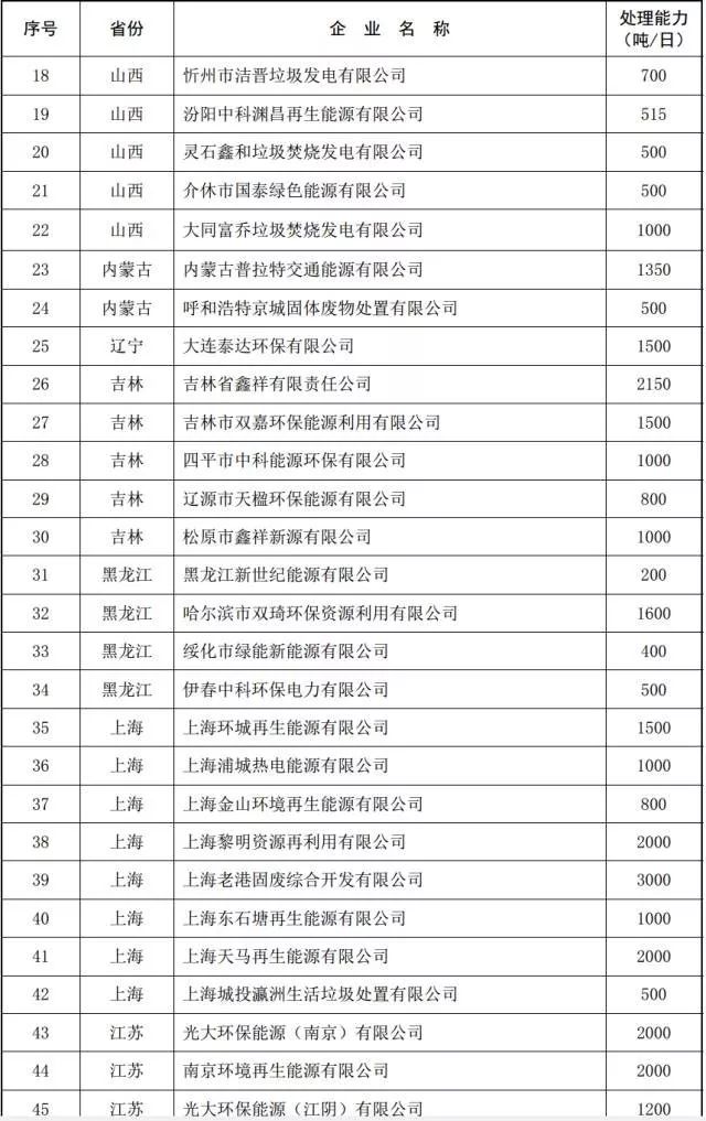 2016年底全國在運(yùn)生活垃圾焚燒發(fā)電廠清單