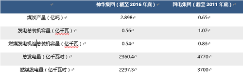 神華集團(tuán)和國(guó)電集團(tuán)主要業(yè)務(wù)情況對(duì)比(財(cái) 新智庫(kù)莫尼塔研究 制圖)