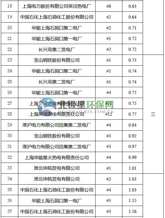 2017年度上海市燃煤發(fā)電機(jī)組環(huán)保排序已經(jīng)公布。
