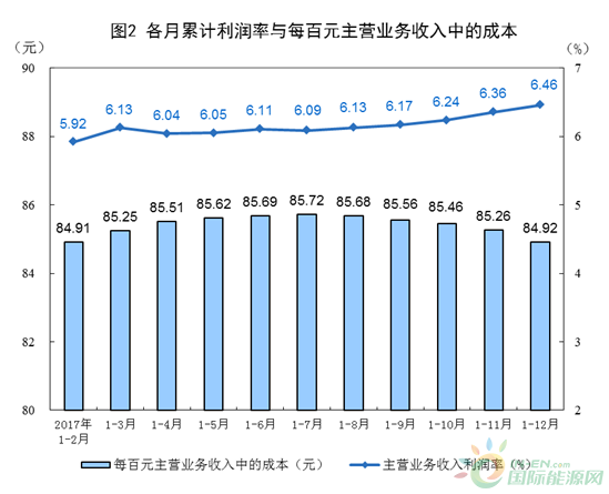 2017年,規(guī)模以上工業(yè)企業(yè)實現(xiàn)主營業(yè)務收入116.5萬億元,比上年增長11.1%;發(fā)生主營業(yè)務成本98.9萬億元,增長10.8%;主營業(yè)務收入利潤率為6.46%,比上年提高0.54個百分點。