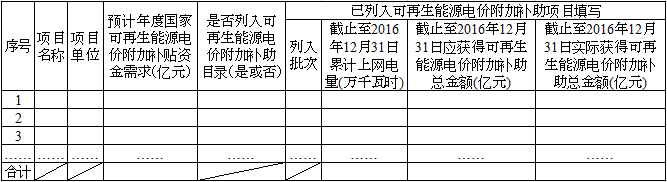 其中可再生能源電價(jià)附加補(bǔ)貼資金拖欠情況。填表3和表4。
