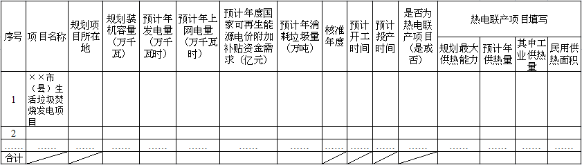 (三)“十三五”新建城鎮(zhèn)生活垃圾焚燒發(fā)電項(xiàng)目核準(zhǔn)計(jì)劃。填表6。