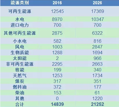 表 1 《能源發(fā)展十年計(jì)劃2016-2026》中分類型裝機(jī)容量預(yù)測