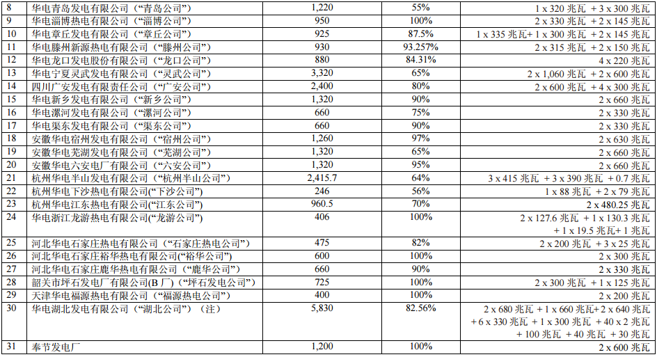 ?1) 控股燃煤及燃?xì)獍l(fā)電機組詳細(xì)情況如下: