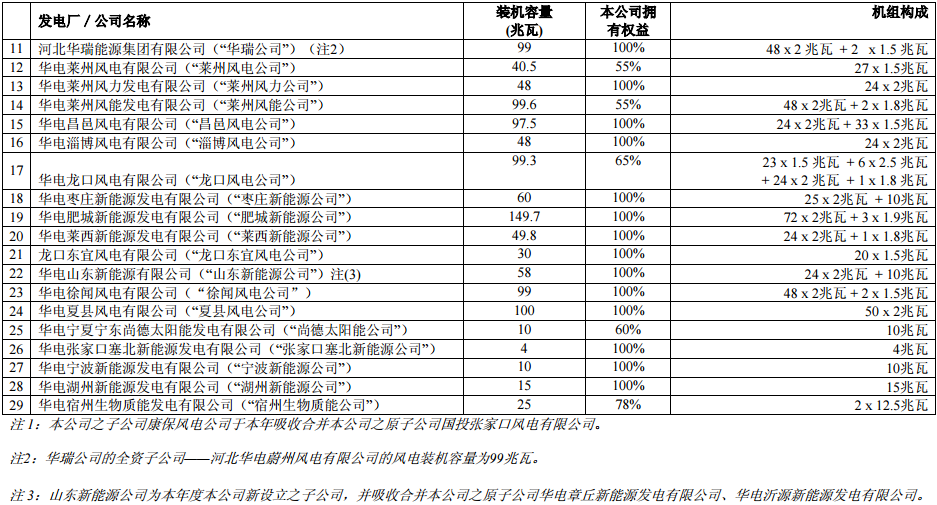2)控股可再生能源發(fā)電機組詳細(xì)情況如下: