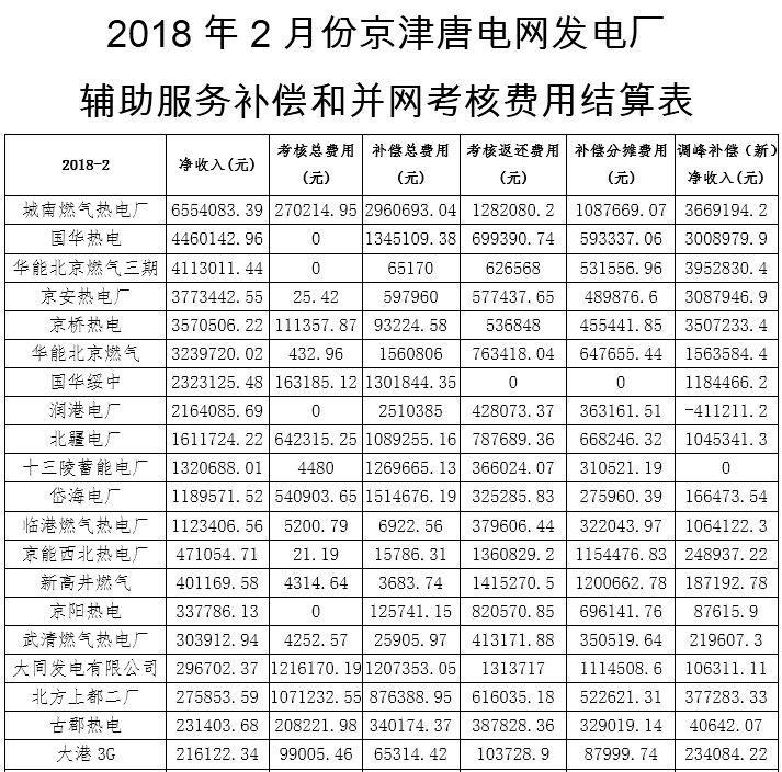 近日,華北能監(jiān)局公布京津唐電網(wǎng)2018年2月份“兩個細(xì)則”試運(yùn)行結(jié)果,詳情如下: