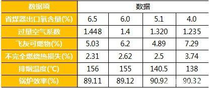 表1.某典型電廠鍋爐過量空氣系數(shù)對效率