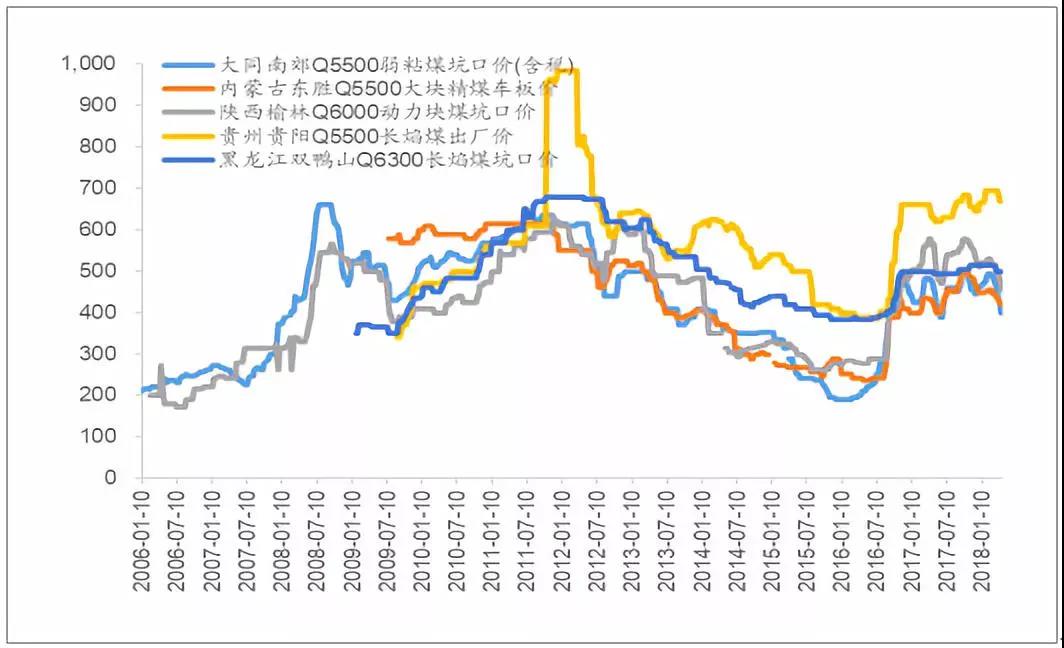 我國主要產(chǎn)地煤價(單位:元/噸)