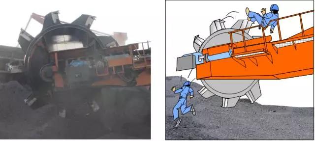 司機突然想起斗輪機需連續(xù)試運,沒有到就地檢查斗輪機是否具備啟動條件,只是在司機室瞭望,便啟動斗輪機。導致一名人員被旋轉(zhuǎn)的斗輪帶起甩到倒流板的篦子上死亡,另一名人員從斗輪上跳下來,撿了一條命。