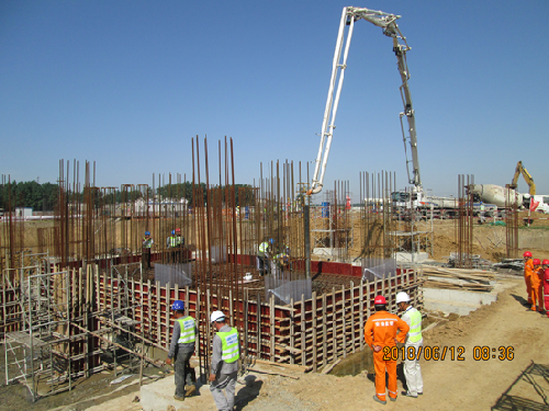 此次澆筑的汽機(jī)基座筏板基礎(chǔ)是鳳臺(tái)項(xiàng)目首個(gè)較大體積混凝土,質(zhì)量要求高,采用C40混凝土,澆筑混凝土共計(jì)150立方。鳳臺(tái)項(xiàng)目部加強(qiáng)施工管理,從混凝土原材料采購(gòu)、試驗(yàn)、人員及機(jī)械準(zhǔn)備,到混凝土生產(chǎn)、澆筑、養(yǎng)護(hù)等各環(huán)節(jié)均進(jìn)行嚴(yán)格的質(zhì)量策劃和控制。澆筑前對(duì)所有施工人員進(jìn)行了安全技術(shù)交底,為施工過(guò)程安全、有序、連續(xù)提供了保證。