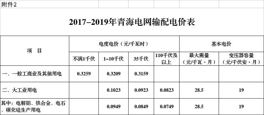 2.2017-2019年青海電網(wǎng)輸配電價(jià)表