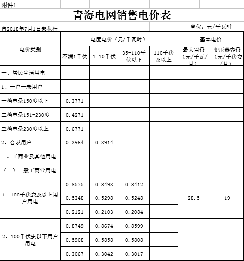 附件:1.青海電網(wǎng)銷(xiāo)售電價(jià)表