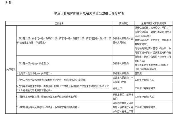 附件:祁連山自然保護區(qū)水電站關(guān)停退出整治任務(wù)分解表