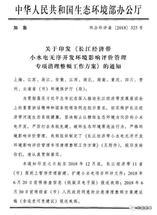 生態(tài)環(huán)境部:暫停長江經濟帶小水電環(huán)評