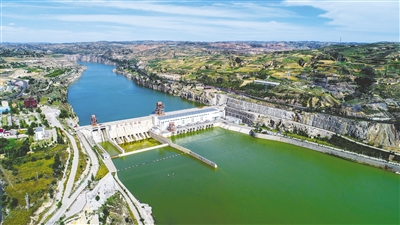 7月12日,鄂爾多斯市準(zhǔn)格爾旗,順利投運(yùn)后的龍口水電站航拍圖。