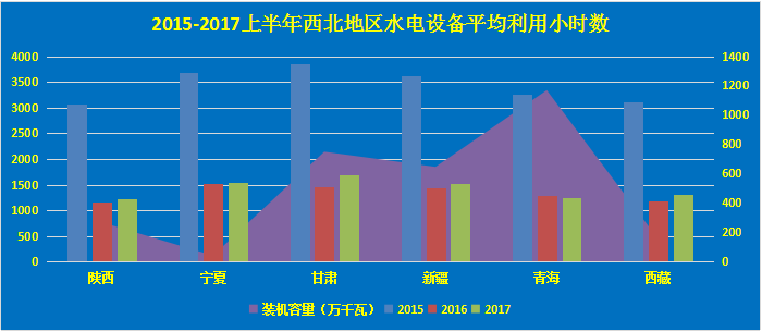 西北區(qū)域是我國(guó)重要的水電基地之一。數(shù)據(jù)顯示,西北區(qū)域各省裝機(jī)容量相對(duì)較低。截止2017年6月份,超過(guò)1000萬(wàn)千瓦的省份僅有青海省,裝機(jī)容量達(dá)到1168萬(wàn)千瓦。今年上半年,除寧夏、青海,西北區(qū)域各省水電新增裝機(jī)有部分提升,陜西省增幅相對(duì)較高,達(dá)到68萬(wàn)千瓦。