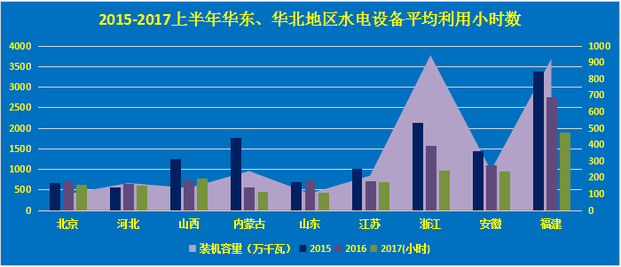 中電傳媒電力傳媒數(shù)據(jù)研發(fā)中心分析顯示,華東、華北區(qū)域以抽水蓄能電站為主,在區(qū)域電網(wǎng)中以作為調(diào)峰電源,對(duì)于穩(wěn)定電網(wǎng)起到至關(guān)重要的作用。2017上半年,華北、華東區(qū)域負(fù)荷不斷上漲,但是電力供應(yīng)總體寬松,調(diào)峰電源設(shè)備利用率相對(duì)較低。隨著迎峰度夏的來(lái)臨,華東地區(qū)作為我國(guó)主要的負(fù)荷地區(qū)之一,全社會(huì)用電量將迎來(lái)一年中的高峰,此時(shí)作為重要的調(diào)峰機(jī)組,水電將承擔(dān)起越來(lái)越重要的作用。預(yù)計(jì)第三季度,該區(qū)域水電設(shè)備平均利用小時(shí)數(shù)會(huì)實(shí)現(xiàn)一定程度的上漲。
