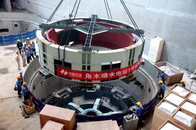 角木塘廠房首臺(tái)機(jī)組定子吊裝