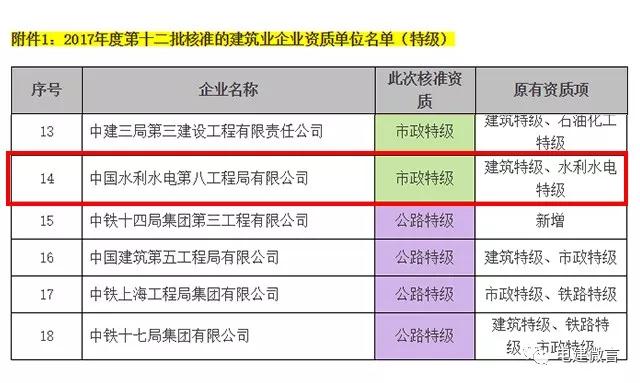 水電八局特級資質(zhì)一覽