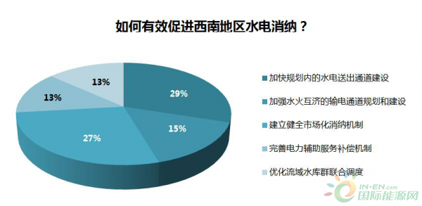 在建立外送通道的同時,針對有效促進(jìn)西南地區(qū)水電消納問題,同比例(13%)的受訪者認(rèn)為關(guān)鍵在于完善電力輔助服務(wù)補(bǔ)償機(jī)制和優(yōu)化流域水庫群聯(lián)合調(diào)度?!锻ㄖ芬裁鞔_將創(chuàng)新體制機(jī)制,促進(jìn)水電消納,明確鼓勵四川、云南等省利用富余水電邊際成本低的優(yōu)勢,積極開展水電與載能企業(yè)專線供電試點,增加本地消納和外送,要推進(jìn)跨省跨區(qū)水電市朝交易,鼓勵開展電力現(xiàn)貨市場試點,形成有利于水電優(yōu)化配置的市朝機(jī)制和價格機(jī)制。