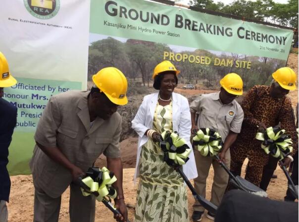 上圖說明:華自科技第一個(gè)海外EPC總包項(xiàng)目——贊比亞卡山吉庫水電站于2016年6月10日正式開工建設(shè),該項(xiàng)目由贊比亞農(nóng)村電氣化管理局投資建設(shè),同年11月21日,項(xiàng)目主體工程舉行動(dòng)工儀式,贊比亞副總統(tǒng)伊農(nóng)格-維納(女)出席儀式,并為動(dòng)工儀式剪彩致辭。
