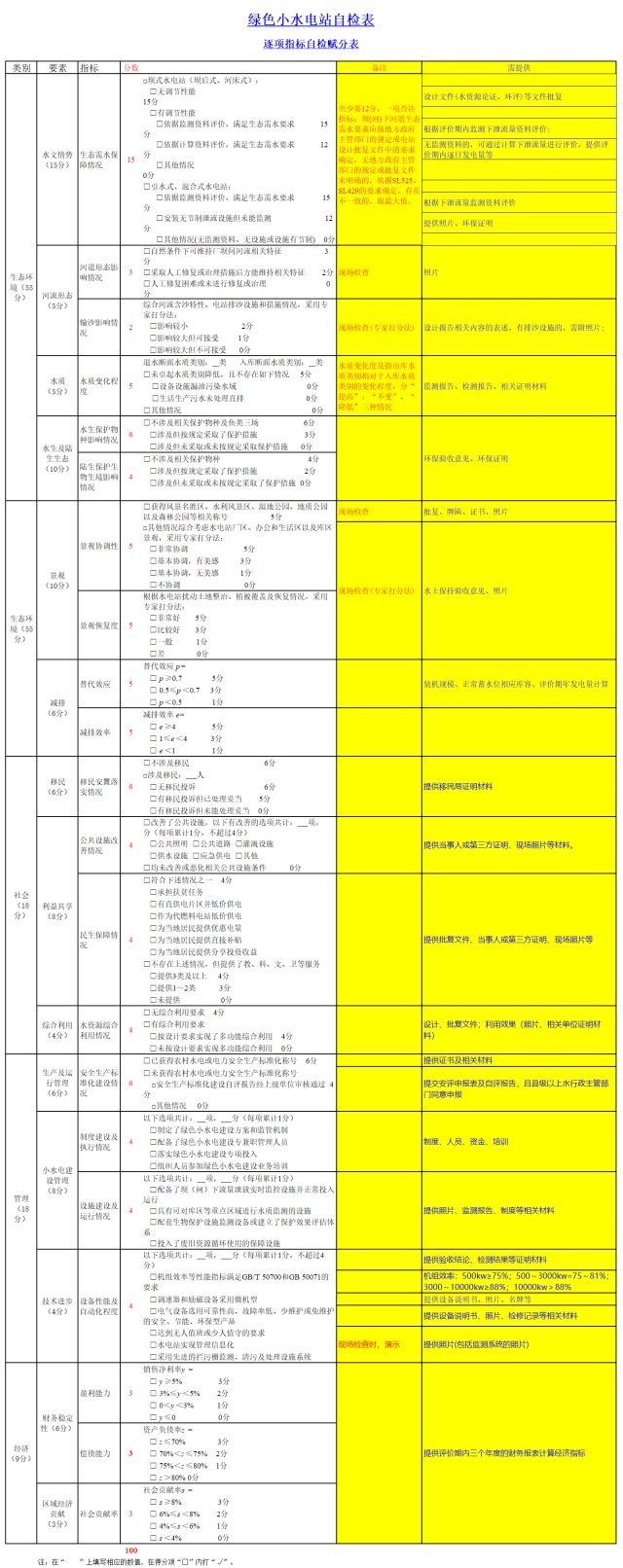 創(chuàng)建任務(wù)完成后,自檢結(jié)果達(dá)到《綠色小水電評價(jià)標(biāo)準(zhǔn)》要求(自評總分≥85分、且水文情勢得分≥12分)的,可填寫《綠色小水電站申報(bào)表》(請?jiān)趆ttp://shp.mwr.gov.cn/下載),同時(shí)將《綠色小水電站自檢表》和相應(yīng)的證明材料(裝訂成冊)作為附件,向所在地縣級以上地方水行政主管部門逐級申報(bào)。