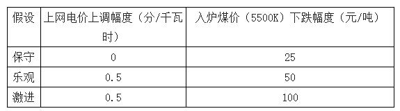 不同情景下電價(jià)與煤價(jià)變化幅度假設(shè)