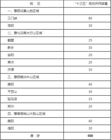 “十三五”時(shí)期,全省規(guī)劃建設(shè)豫西、豫北、豫西南、豫南等地區(qū)四個(gè)百萬(wàn)千瓦級(jí)風(fēng)電基地,到2020年建成并網(wǎng)裝機(jī)規(guī)模400萬(wàn)千瓦左右。