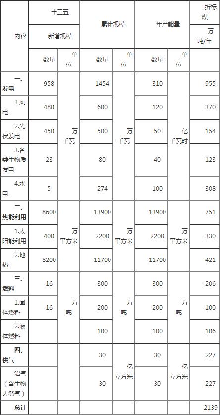 表2 “十三五”時(shí)期可再生能源開(kāi)發(fā)利用主要指標(biāo)