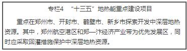 加大地?zé)崮荛_發(fā)利用研究,完善地?zé)崮荛_發(fā)利用相關(guān)標(biāo)準(zhǔn)、政策、價(jià)格等行業(yè)管理體系。以“地?zé)崴h(huán)利用”為指導(dǎo)原則,積極推進(jìn)水熱型地?zé)峁┡?,進(jìn)行傳統(tǒng)供暖區(qū)域的清潔能源供暖替代,將水熱型地?zé)崮芄┡{入城鎮(zhèn)基礎(chǔ)設(shè)施建設(shè)中,集中規(guī)劃,統(tǒng)一開發(fā)。按照“因地制宜,集約開發(fā),加強(qiáng)監(jiān)管,注重環(huán)保”的原則,除城鎮(zhèn)地下空間利用規(guī)劃的區(qū)域外,在公共建筑和新建住宅小區(qū)等區(qū)域鼓勵(lì)開發(fā)利用淺層地?zé)崮?。通過(guò)技術(shù)進(jìn)步、規(guī)范管理解決目前淺層地?zé)崮荛_發(fā)中出現(xiàn)的問(wèn)題。結(jié)合大氣污染治理,重點(diǎn)在鄭州、開封、鶴壁、新鄉(xiāng)等清潔供暖試點(diǎn)城市探索開展地?zé)崮馨l(fā)電示范項(xiàng)目。到2020年,新增地?zé)崮芄┡娣e8200萬(wàn)平方米。