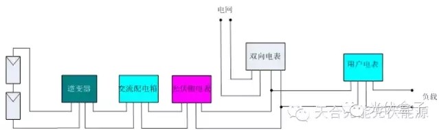 項(xiàng)目施工完成后需要等供電局并網(wǎng)接入,其中電表的接線方法根據(jù)不同地區(qū)也有兩種方法,第一種接法如圖11,因?yàn)楹芏嗉彝ビ脩舨粫?huì)看逆變器,所以需要在交流配電箱輸出端裝一塊計(jì)量光伏發(fā)電電量的電表。原用戶電表改成雙向電表,光伏側(cè)電表的出線端接到該雙向電表的出線端,用于顯示用戶自己用電和賣(mài)到電網(wǎng)的電量,多余的電反轉(zhuǎn)計(jì)量。