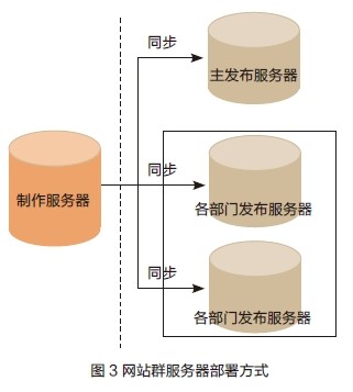 從平臺建設(shè)伊始,網(wǎng)站群便被確定作為平臺的基礎(chǔ)主框架。華東師范大學(xué)網(wǎng)站群采用Webplus 高校網(wǎng)站群平臺進(jìn)行構(gòu)建,采用制作和發(fā)布分開的系統(tǒng)部署方式,如圖3 所示。其中,網(wǎng)站群的制作服務(wù)器作為數(shù)據(jù)存儲端,提供了一個統(tǒng)一的管理后臺。網(wǎng)站群的發(fā)布服務(wù)器實(shí)現(xiàn)網(wǎng)站的前端訪問,所有站點(diǎn)的頁面生成均從制作服務(wù)器獲取相應(yīng)數(shù)據(jù),并靜態(tài)發(fā)布到發(fā)布服務(wù)器上。在制作服務(wù)器和發(fā)布服務(wù)器之間,采用SSL 加密標(biāo)準(zhǔn)和防篡改程序,保障兩者間的數(shù)據(jù)傳輸安全。此外,網(wǎng)站群還集成了校園統(tǒng)一身份認(rèn)證服務(wù),實(shí)現(xiàn)用戶的分級授權(quán),并建立了完善的信息采集、流程管理、信息同步和檢索統(tǒng)計(jì)機(jī)制。