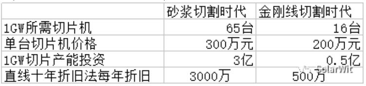 (新產(chǎn)能折舊成本只有老產(chǎn)能的六分之一,而當(dāng)前光伏行業(yè)內(nèi)存在大量的未完成折舊的砂漿切割機,等待他們的命運只有一個:提前淘汰。)