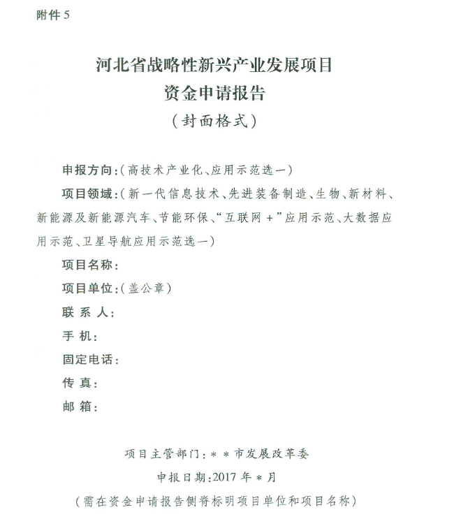 為深入實(shí)施創(chuàng)新驅(qū)動(dòng)發(fā)展戰(zhàn)略,推動(dòng)我省戰(zhàn)略性新興產(chǎn)業(yè)加快發(fā)展,促進(jìn)產(chǎn)業(yè)轉(zhuǎn)型升級(jí),加快培育新動(dòng)能、發(fā)展新經(jīng)濟(jì),按照《河北省戰(zhàn)略性新興產(chǎn)業(yè)發(fā)展“十三五”規(guī)劃》要求,決定組織實(shí)施2018年省戰(zhàn)略性新興產(chǎn)業(yè)發(fā)展專項(xiàng),現(xiàn)將有關(guān)申報(bào)事項(xiàng)通知如下: