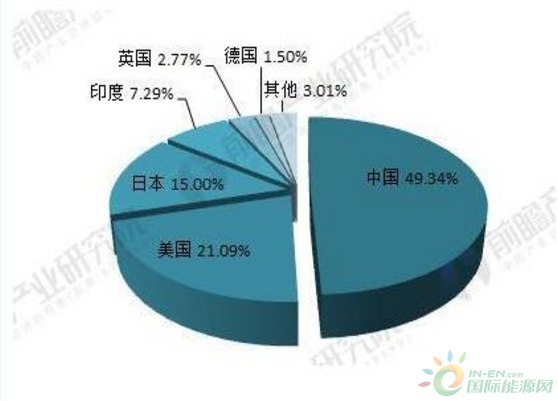 圖表3:2016年全球代表性國家光伏新增裝機容量占比(單位:%)