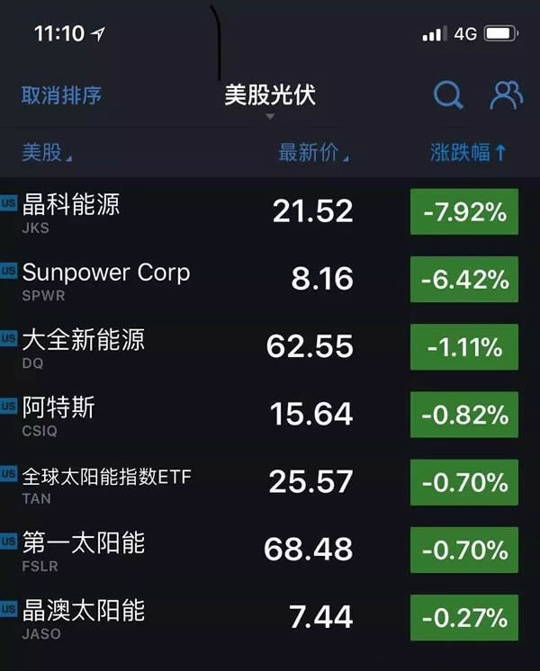 這樣的消息,導(dǎo)致了當(dāng)天美國(guó)整個(gè)光伏板塊的下跌:
