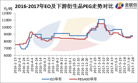 據(jù)金聯(lián)創(chuàng)了解,雖目前聚乙二醇市場行情多跟隨原料環(huán)氧乙烷價格走勢,但聚乙二醇的下游應(yīng)用領(lǐng)域廣泛且滲透到人們?nèi)粘I钕椿a(chǎn)業(yè)中的方方面面,這也確保了聚乙二醇下游需求的扎實穩(wěn)定,銷售淡旺季的差距也因此可以保證不出現(xiàn)過山車式行情,利潤傳導(dǎo)以及成本方面的影響也因此顯得比較簡單。