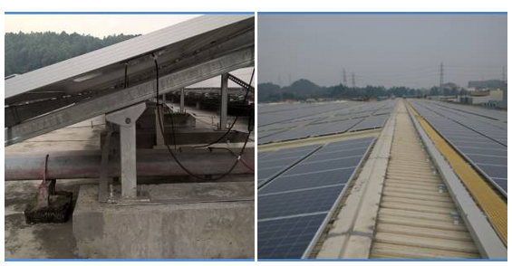 組件安裝(1)支架的搭建除了要保證組件的最佳傾角和朝向,應(yīng)盡可能在屋頂上留有足夠間距,實現(xiàn)對流降低組件溫度;