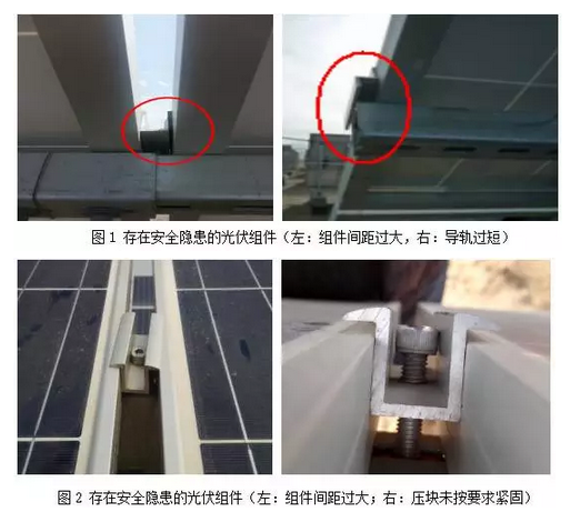 1)、電站安全生產中存在管理比較粗放、系統(tǒng)性管理不夠、人員素質不高、現場管理不到位,設備日常監(jiān)視、巡視檢查不到位、不徹底,設備隱患處理不及時的問題。比如電站組織人員對光伏區(qū)進行除草工作時發(fā)現組件壓塊松動現象,除草過程中已對光伏區(qū)組件松動壓塊進行了禁固處理。由于電站組件數量較多 ,人員緊缺未能及時組織人員對電站組件壓塊松動情況進行專項檢查。