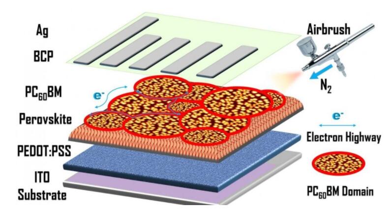 因此團(tuán)隊(duì)透過(guò)噴涂 ETL 方式,大大減少鈣鈦礦成本,并可利用該方式達(dá)成大范圍覆涂,讓科學(xué)家打造大型太陽(yáng)能板之余,還可確保電池性能。為進(jìn)一步提升電池性能,研究也利用化合物苯—丁酸甲基酯(PCBM)來(lái)改進(jìn)導(dǎo)電性、提高光捕獲性能。