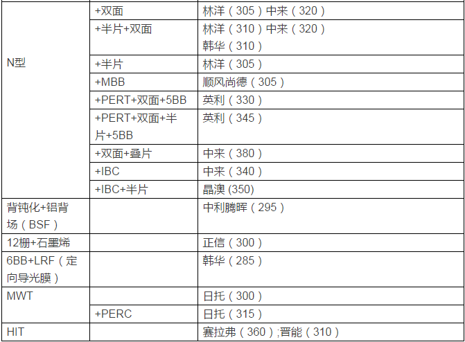 從上表看出,已經(jīng)占據(jù)主流的高效技術(shù)路線普通PERC技術(shù)難以在超級領(lǐng)跑者中施展手腳,只有少數(shù)幾家可以利用普通perc技術(shù)做出更高效的產(chǎn)品。在這個競爭平臺中,N型PERC、IBC、HIT、雙面電池等將擁有強(qiáng)大的競爭力。