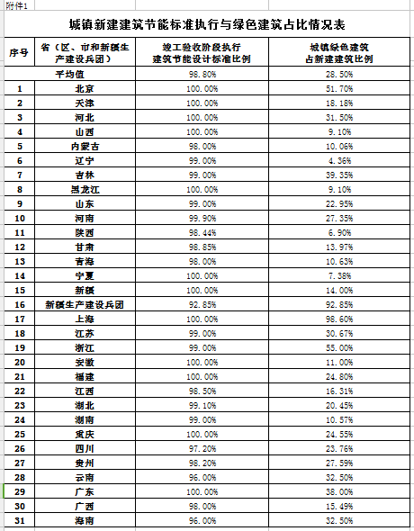 附件:1.城鎮(zhèn)新建建筑節(jié)能標準執(zhí)行與綠色建筑占比情況表