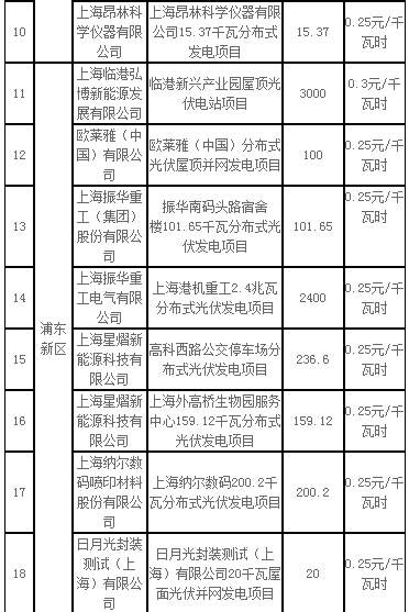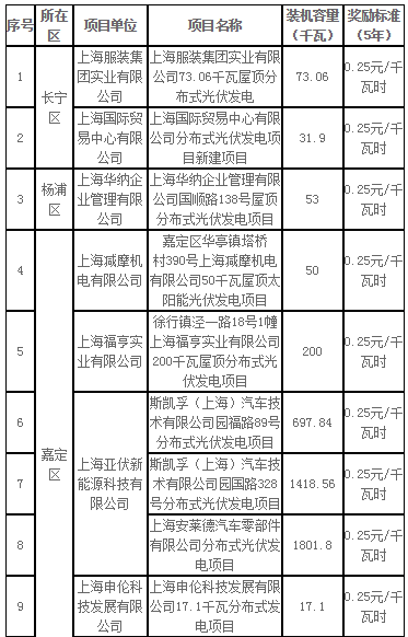 1、2017年第一批上海市可再生能源和新能源專項資金獎勵項目表(光伏項目)