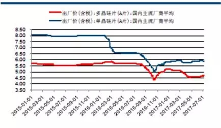 去年底發(fā)改委下達(dá)了《國(guó)家發(fā)展改革委關(guān)于調(diào)整光伏發(fā)電陸上風(fēng)電標(biāo)桿上網(wǎng)電價(jià)的通知》,在今年6月30日之后,將I至III類(lèi)資源區(qū)新建光伏電站的標(biāo)桿上網(wǎng)電價(jià)分別調(diào)整為每千瓦時(shí)0.65元、0.75元、0.85元,比2016年電價(jià)每千瓦時(shí)下調(diào)0.15元、0.13元、0.13元。此前市場(chǎng)普遍認(rèn)為,6.30之前的搶裝將透支三季度的裝機(jī)需求,光伏產(chǎn)業(yè)鏈的價(jià)格或?qū)⒏ツ耆径纫粯映霈F(xiàn)深度調(diào)整,但今年觀測(cè)到價(jià)格信號(hào)有所不同。