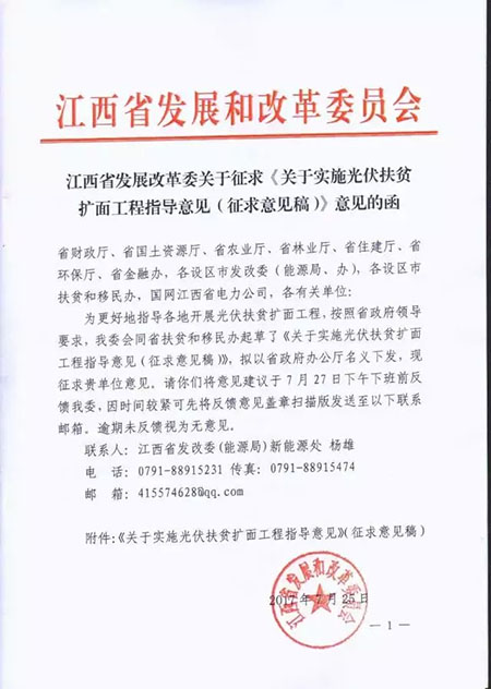 江西發(fā)改委關(guān)于實施光伏扶貧擴(kuò)面工程的指導(dǎo)意見的通知(征求建議稿)