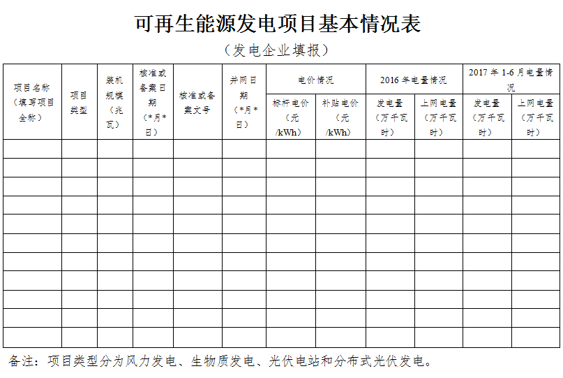附件1:可再生能源發(fā)電項目基本情況表