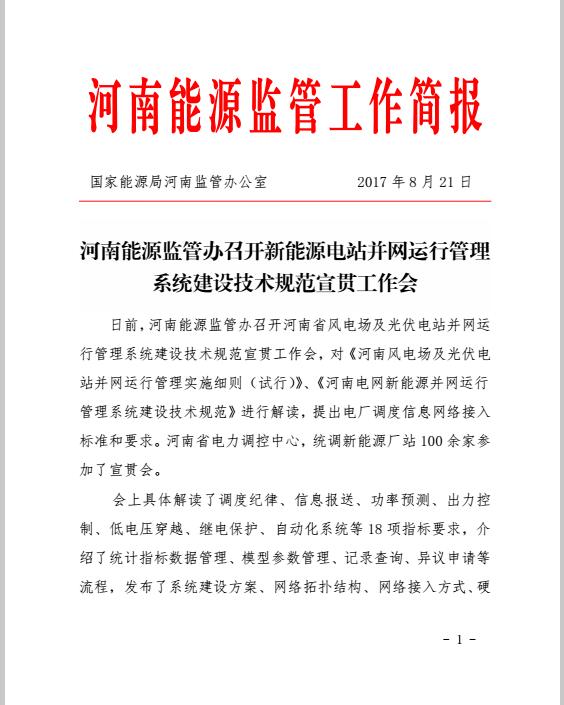 河南能監(jiān)辦召開新能源電站并網(wǎng)運(yùn)行管理系統(tǒng)建設(shè)技術(shù)規(guī)范宣貫會(huì)